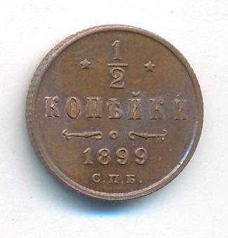 Лицевая сторона — вензель Александра II в венке из лавровой и дубовой ветвей; оборотная — обозначение номинала (1/2 копейки) и дата. Нормативный вес — 1,64 грамма, гурт рубчатый.