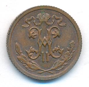 Лицевая сторона — вензель Александра II в венке из лавровой и дубовой ветвей; оборотная — обозначение номинала (1/2 копейки) и дата. Нормативный вес — 1,64 грамма, гурт рубчатый.