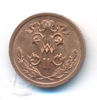 Лицевая сторона — вензель Александра II в венке из лавровой и дубовой ветвей; оборотная — обозначение номинала (1/2 копейки) и дата. Нормативный вес — 1,64 грамма, гурт рубчатый.