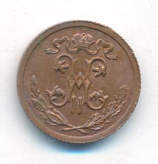 Лицевая сторона — вензель Александра II в венке из лавровой и дубовой ветвей; оборотная — обозначение номинала (1/2 копейки) и дата. Нормативный вес — 1,64 грамма, гурт рубчатый.