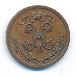 Лицевая сторона — вензель Александра II в венке из лавровой и дубовой ветвей; оборотная — обозначение номинала (1/2 копейки) и дата. Нормативный вес — 1,64 грамма, гурт рубчатый.