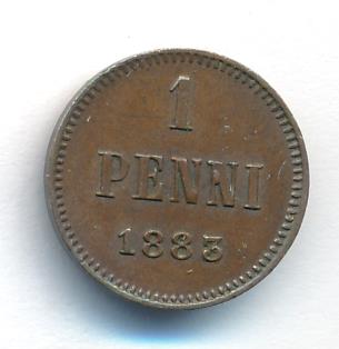 Лицевая сторона — вензель Александра II, оборотная — номинал (1 PENNIA) и дата. Нормативный вес — 1,28 грамма, гурт гладкий.