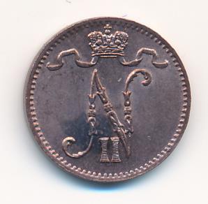 Лицевая сторона — вензель Александра II, оборотная — номинал (1 PENNIA) и дата. Нормативный вес — 1,28 грамма, гурт гладкий.