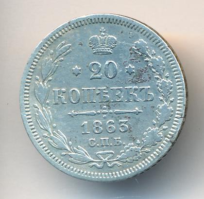 Лицевая сторона — гербовый орел, оборотная —обозначение номинала (20 копеекъ), окруженное венком из лавровой и дубовой ветвей и дата.