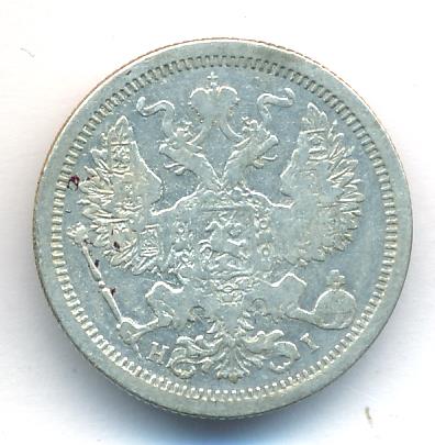 Лицевая сторона — гербовый орел, оборотная —обозначение номинала (20 копеекъ), окруженное венком из лавровой и дубовой ветвей и дата.