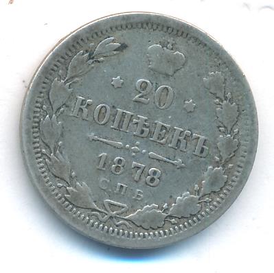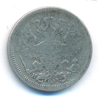 Лицевая сторона — гербовый орел, оборотная —обозначение номинала (20 копеекъ), окруженное венком из лавровой и дубовой ветвей и дата.