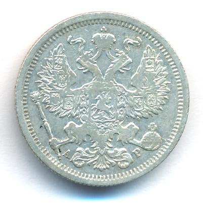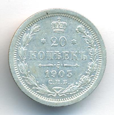 Лицевая сторона — гербовый орел, оборотная —обозначение номинала (20 копеекъ), окруженное венком из лавровой и дубовой ветвей и дата.