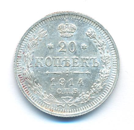Лицевая сторона — гербовый орел, оборотная —обозначение номинала (20 копеекъ), окруженное венком из лавровой и дубовой ветвей и дата.