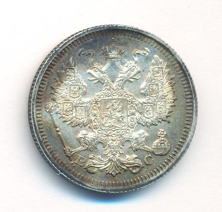 Лицевая сторона — гербовый орел, оборотная —обозначение номинала (20 копеекъ), окруженное венком из лавровой и дубовой ветвей и дата.