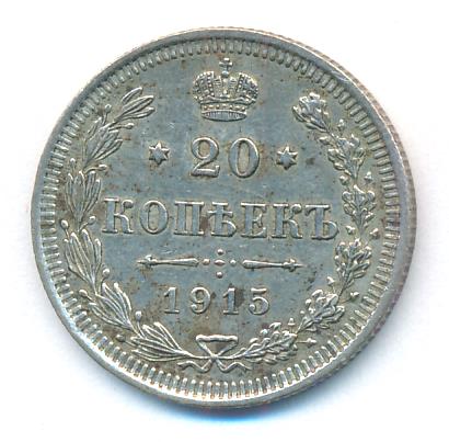 Лицевая сторона — гербовый орел, оборотная —обозначение номинала (20 копеекъ), окруженное венком из лавровой и дубовой ветвей и дата.
