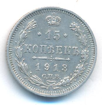 Лицевая сторона — гербовый орел, оборотная —обозначение номинала (15 копеекъ), окруженное венком из лавровой и дубовой ветвей и дата.