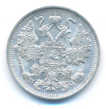 Лицевая сторона — гербовый орел, оборотная —обозначение номинала (15 копеекъ), окруженное венком из лавровой и дубовой ветвей и дата.
