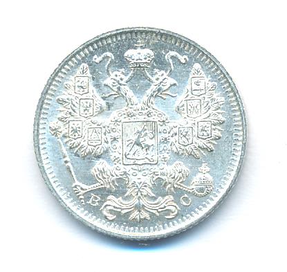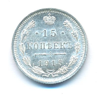 Лицевая сторона — гербовый орел, оборотная —обозначение номинала (15 копеекъ), окруженное венком из лавровой и дубовой ветвей и дата.