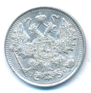 Лицевая сторона — гербовый орел, оборотная —обозначение номинала (15 копеекъ), окруженное венком из лавровой и дубовой ветвей и дата.