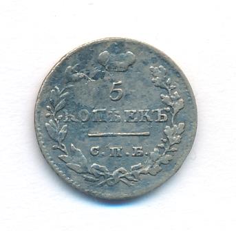 Лицевая сторона - двуглавый орел и дата, оборотная — обозначение номинала (5 копеекъ) в венке из лавровой и дубовой ветвей. Проба до 1813 года — 750, нормативный вес — 1,2 грамма; после 1813 года — проба 868, нормативный вес — 1,04 грамма.