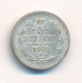 Лицевая сторона — гербовый орел, оборотная —обозначение номинала (5 копеекъ), окруженное венком из лавровой и дубовой ветвей и дата.