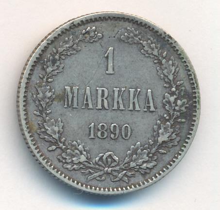 Лицевая сторона — российский двуглавый орел с гербом Великого княжества Финляндского на груди в кольцевой надписи с указанием количества штук (94,48) из фунта сплава серебра, оборотная — номинал и дата в венке из дубовых листьев. Проба — 868, нормативный вес — 5,18 грамма, гурт рубчатый.