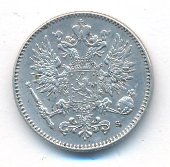 Лицевая сторона — российский двуглавый орел с гербом Великого княжества Финляндского на груди, оборотная — номинал и дата в венке из дубовых листьев. Проба — 750, нормативный вес — 2,55 грамма, гурт рубчатый.