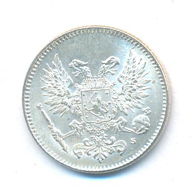 Лицевая сторона — российский двуглавый орел с гербом Великого княжества Финляндского на груди, оборотная — номинал и дата в венке из дубовых листьев. Проба — 750, нормативный вес — 2,55 грамма, гурт рубчатый.
