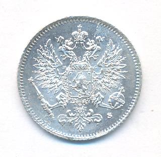 Лицевая сторона — российский двуглавый орел с гербом Великого княжества Финляндского на груди, оборотная — номинал и дата в венке из дубовых листьев. Проба — 750, нормативный вес — 1,27 грамма, гурт рубчатый.