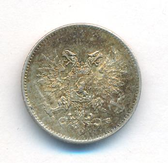 Лицевая сторона — российский двуглавый орел с гербом Великого княжества Финляндского на груди, оборотная — номинал и дата в венке из дубовых листьев. Проба — 750, нормативный вес — 1,27 грамма, гурт рубчатый.