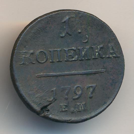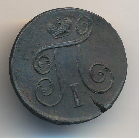 Лицевая сторона — вензель Павла I под короной, оборотная — номинал (1 копейка) и дата. Нормативный вес — 10,24 грамма, гурт — шнур.