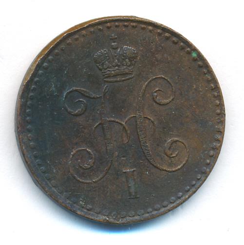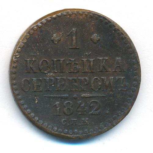 Лицевая сторона — вензель Николая I в бусовом ободке, оборотная — надпись «1 КОПЕЙКА СЕРЕБРОМ» и дата. Нормативный вес — 10,24 грамма, гурт гладкий.