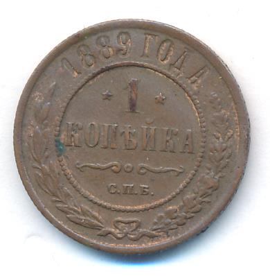 Лицевая сторона — двуглавый орел, надпись МЕДНАЯ РОССIЙСКАЯ МОНЕТА и обозначение номинала (одна копейка); оборотная — обозначение номинала (1 копейка) в бусовом ободке и дата. Нормативный вес — 3,28 грамма, гурт рубчатый.