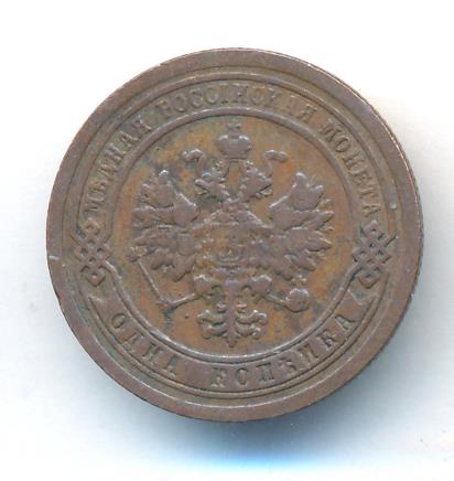 Лицевая сторона — двуглавый орел, надпись МЕДНАЯ РОССIЙСКАЯ МОНЕТА и обозначение номинала (одна копейка); оборотная — обозначение номинала (1 копейка) в бусовом ободке и дата. Нормативный вес — 3,28 грамма, гурт рубчатый.