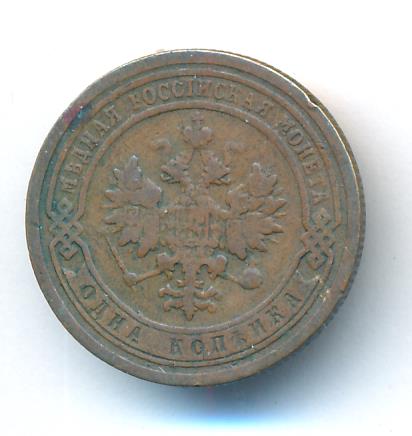 Лицевая сторона — двуглавый орел, надпись МЕДНАЯ РОССIЙСКАЯ МОНЕТА и обозначение номинала (одна копейка); оборотная — обозначение номинала (1 копейка) в бусовом ободке и дата. Нормативный вес — 3,28 грамма, гурт рубчатый.