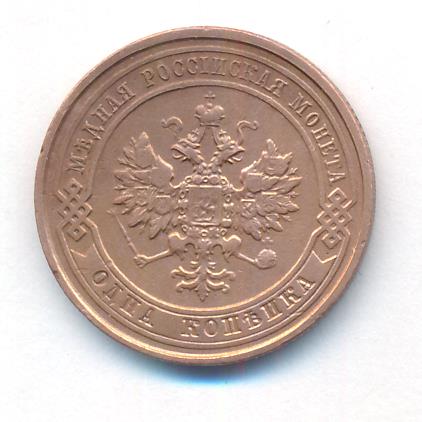 Лицевая сторона — двуглавый орел, надпись МЕДНАЯ РОССIЙСКАЯ МОНЕТА и обозначение номинала (одна копейка); оборотная — обозначение номинала (1 копейка) в бусовом ободке и дата. Нормативный вес — 3,28 грамма, гурт рубчатый.