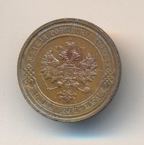 Лицевая сторона — двуглавый орел, надпись МЕДНАЯ РОССIЙСКАЯ МОНЕТА и обозначение номинала (одна копейка); оборотная — обозначение номинала (1 копейка) в бусовом ободке и дата. Нормативный вес — 3,28 грамма, гурт рубчатый.