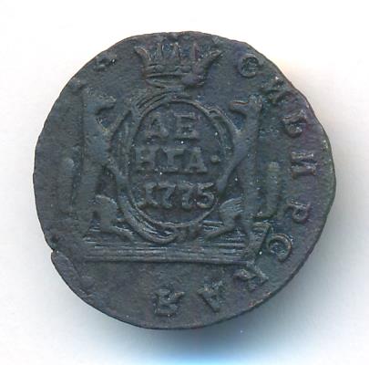 Лицевая сторона - два соболя поддерживают щит с обозначением номинала (денга) под короной, надпись «СИБИРСКАЯ МОНЕТА». Оборотная — вензель Екатерины II в венке из пальмовой и лавровой ветвей. Гурт — шнур, вес — 3,28 грамма.
