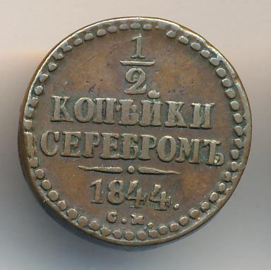 На новых монетах равенство серебряному курсу указано прямо в номинале: «1/2 КОПЕЙКИ СЕРЕБРОМ». Указ об их выпуске следует 6 сентября 1840 года («О новой медной монете на серебро 16-рублевого в пуде достоинства»). Массовая чеканка началось за год до этого на Екатеринбургском (знак ЕМ) и Сузунском (знак СМ) дворах. В качестве временной меры в 1840-1843 годах к ним подключается Ижорский завод (знак СПМ). С 1844 года после «значительного скопления медной монеты в народном обращении» в Екатеринбурге производство прекращается, а в Сузуне сокращается. Варшавский двор (знак MW), получив разрешение на выпуск общегосударственной монеты, успел отчеканить ее лишь в небольшом количестве в 1848 году.