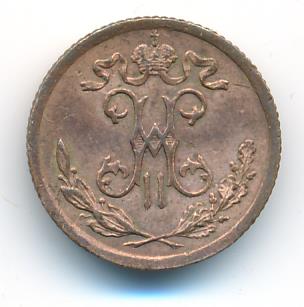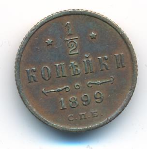 Лицевая сторона — вензель Александра II в венке из лавровой и дубовой ветвей; оборотная — обозначение номинала (1/2 копейки) и дата. Нормативный вес — 1,64 грамма, гурт рубчатый.