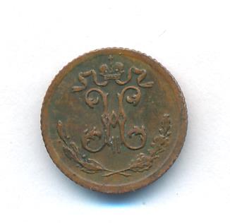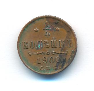 Лицевая сторона — вензель Александра II в венке из лавровой и дубовой ветвей; оборотная — обозначение номинала (1/4 копейки) и дата. Нормативный вес — 0,82 грамма, гурт рубчатый.
