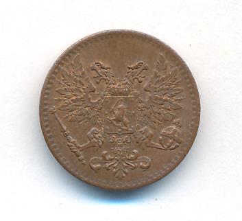 Лицевая сторона — вензель Александра II, оборотная — номинал (1 PENNIA) и дата. Нормативный вес — 1,28 грамма, гурт гладкий.