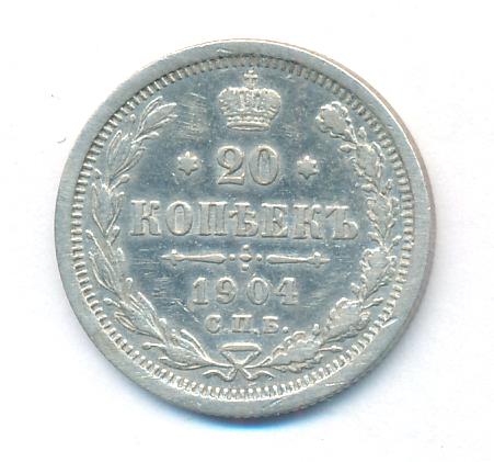 Лицевая сторона — гербовый орел, оборотная —обозначение номинала (20 копеекъ), окруженное венком из лавровой и дубовой ветвей и дата.