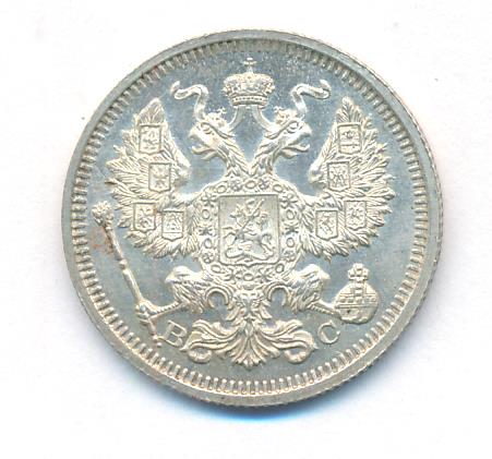 Лицевая сторона — гербовый орел, оборотная —обозначение номинала (20 копеекъ), окруженное венком из лавровой и дубовой ветвей и дата.