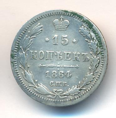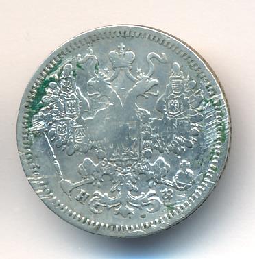 Лицевая сторона — гербовый орел, оборотная —обозначение номинала (15 копеекъ), окруженное венком из лавровой и дубовой ветвей и дата.