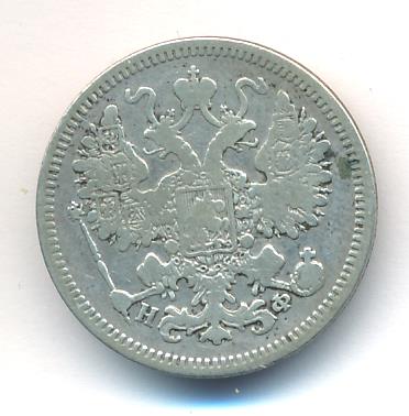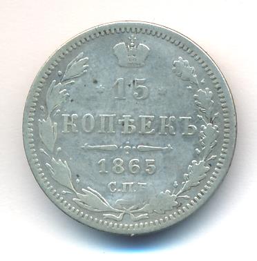 Лицевая сторона — гербовый орел, оборотная —обозначение номинала (15 копеекъ), окруженное венком из лавровой и дубовой ветвей и дата.