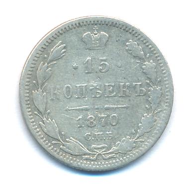 Лицевая сторона — гербовый орел, оборотная —обозначение номинала (15 копеекъ), окруженное венком из лавровой и дубовой ветвей и дата.