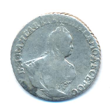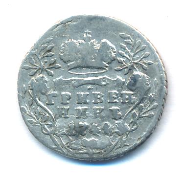 Лицевая сторона — портрет и надпись «Б М Елисаветъ I IMP I САМОД ВСЕРОС», оборотная — обозначение номинала (гривенникъ) и дата. Проба — 750 (с 1746 года - 802), нормативный вес — 2,59 грамма (с 1755 года — 2,42). Гурт — шнур.