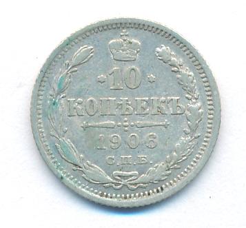 Лицевая сторона — гербовый орел, оборотная —обозначение номинала (10 копеекъ), окруженное венком из лавровой и дубовой ветвей и дата.