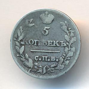 Лицевая сторона - двуглавый орел и дата, оборотная — обозначение номинала (5 копеекъ) в венке из лавровой и дубовой ветвей. Проба до 1813 года — 750, нормативный вес — 1,2 грамма; после 1813 года — проба 868, нормативный вес — 1,04 грамма.