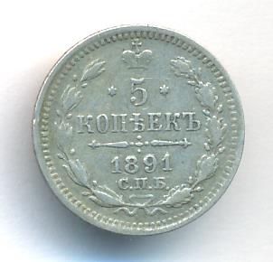 Лицевая сторона — гербовый орел, оборотная —обозначение номинала (5 копеекъ), окруженное венком из лавровой и дубовой ветвей и дата.