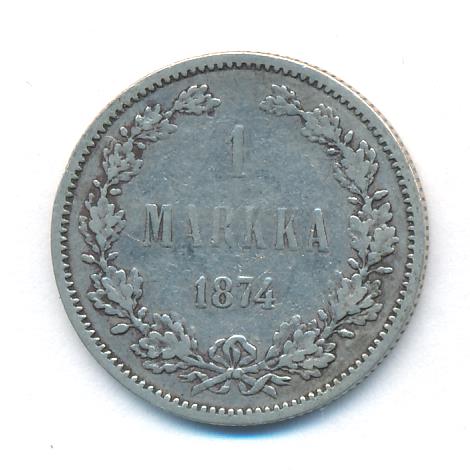 Лицевая сторона — российский двуглавый орел с гербом Великого княжества Финляндского на груди в кольцевой надписи с указанием количества штук (94,48) из фунта сплава серебра, оборотная — номинал и дата в венке из дубовых листьев. Проба — 868, нормативный вес — 5,18 грамма, гурт рубчатый.
