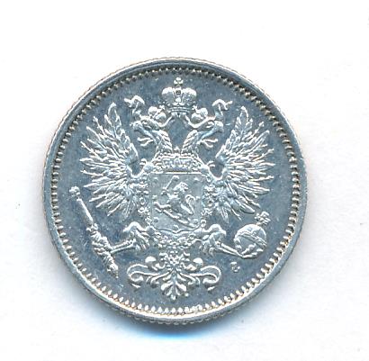 Лицевая сторона — российский двуглавый орел с гербом Великого княжества Финляндского на груди, оборотная — номинал и дата в венке из дубовых листьев. Проба — 750, нормативный вес — 2,55 грамма, гурт рубчатый.