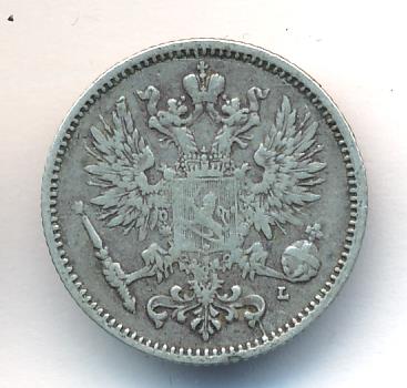 Лицевая сторона — российский двуглавый орел с гербом Великого княжества Финляндского на груди, оборотная — номинал и дата в венке из дубовых листьев. Проба — 750, нормативный вес — 2,55 грамма, гурт рубчатый.