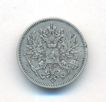 Лицевая сторона — российский двуглавый орел с гербом Великого княжества Финляндского на груди, оборотная — номинал и дата в венке из дубовых листьев. Проба — 750, нормативный вес — 1,27 грамма, гурт рубчатый.